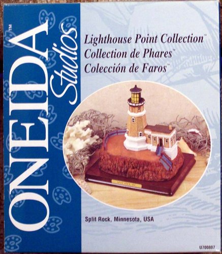 Figurine measures approximately 4-1/2" tall with a base of 5-7/8" by 4-5/8". Wooden base. Front of base reads: Split Rock, MN. Bottom of base reads: Oneida Studios Lighthouse Point Collection 1998 Oneida, Ltd. Made In China. In original box..../ Split Rock MN Lighthouse / Silversmiths